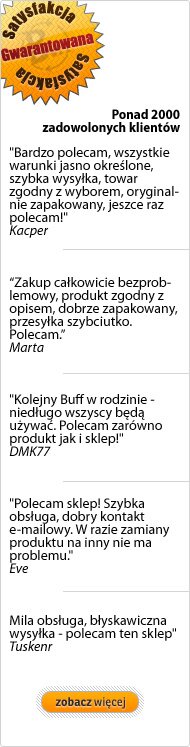 Posiadamy również duży asortyment produktów. Nasza kolekcja Buff to bardzo szeroka gama produktów, która zachwyca swoim pięknym wyglądem. Dokładamy wszelkich starań, aby w naszym sklepie były cały czas dostępne wszystkie wzory chust, nie tylko te najbardziej popularne i najczęściej kupowane. Bardzo często proponujemy Państwu promocje. Zachęcamy również do odwiedzania zakładki promocje na naszej stronie internetowej sklepbuff.pl. Jeśli zapiszesz się do naszego darmowego newslettera, masz pewność, że nie ominie Cię żadna niespodzianka lub promocja. Nasze paczki z towarem są bardzo starannie pakowane i wysyłane kurierem prosto pod Twój adres.